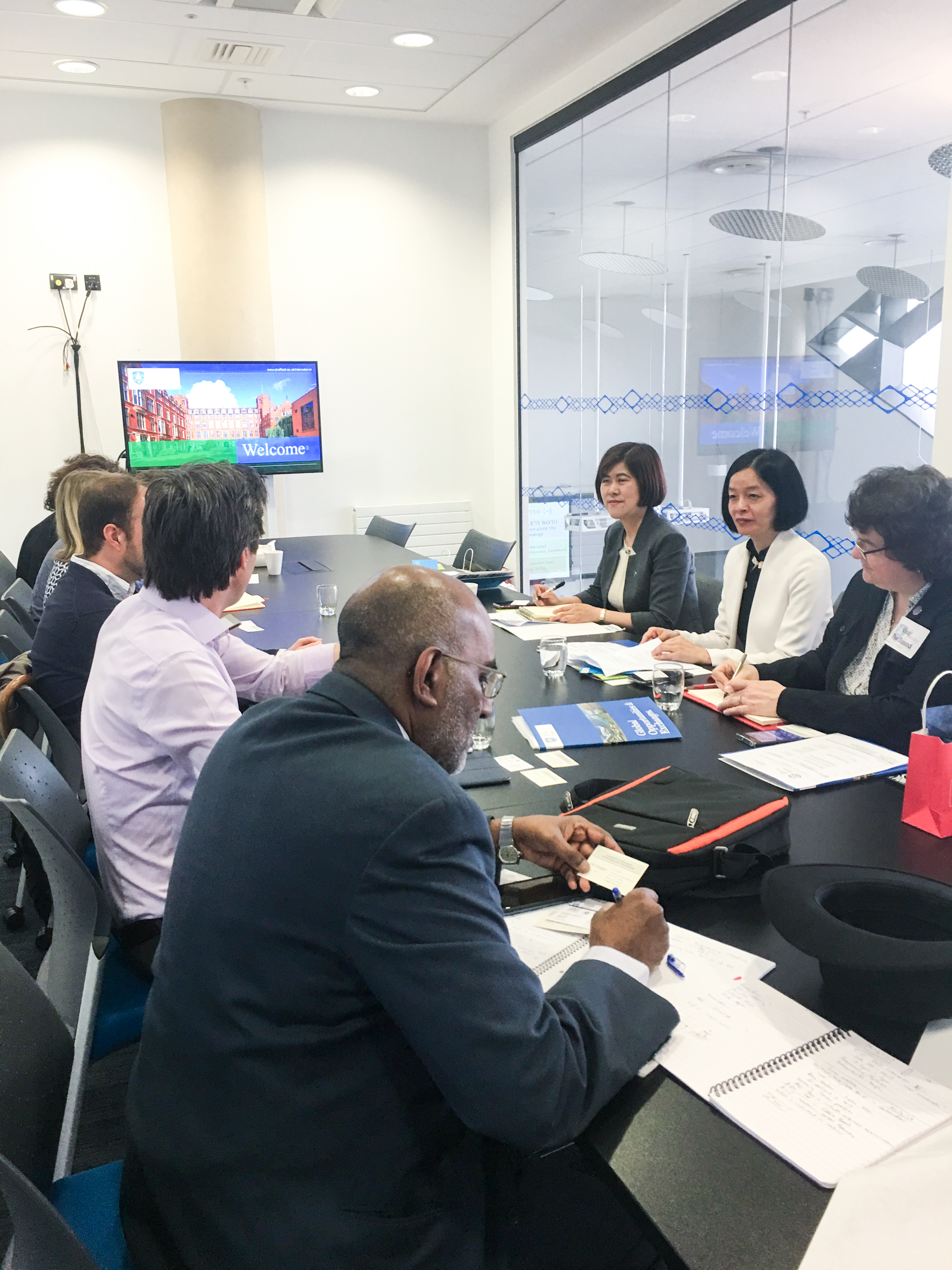During the University of Huddersfield visit, the delegation from SBC extended a warm welcome by Professor Bob Cryan, President of Huddersfield University on behalf of the College.Following the introduction, the delegation engaged in wide-ranging discussions concerning opportunities in cooperative school projects, student exchanges, research cooperation between two institutions. After the meeting, Professor Bob Cryan invited delegation to experience the School of Business, School of Computing and School of Engineering and College of Applied Science.