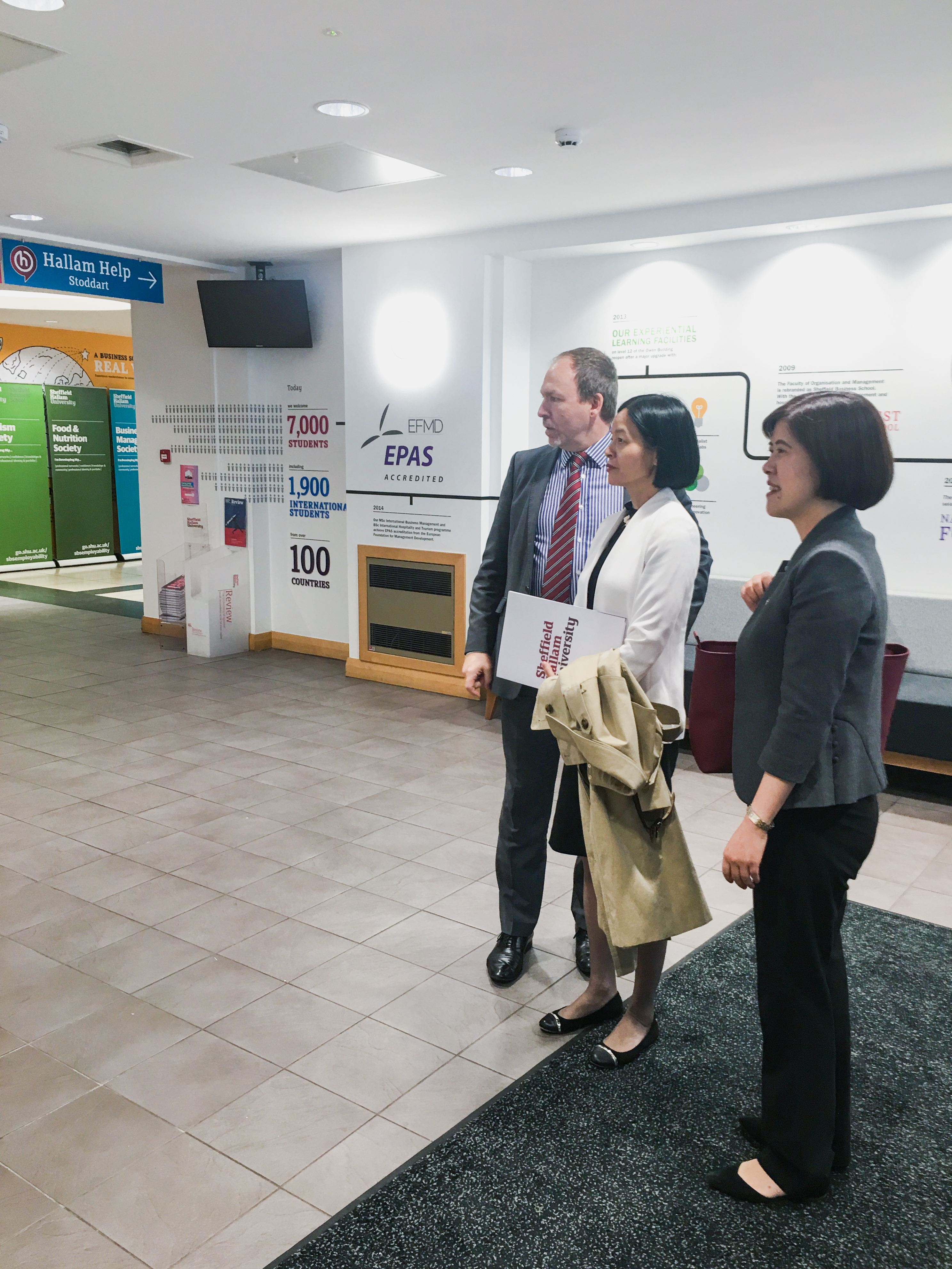 During the University of Sheffield visit, the delegation from SBC extended a warm welcome by Dr. Malcolm Butler, Vice President of International Exchange, University of Sheffield on behalf of the College.Following the introduction, the delegation engaged in the cooperative school project has conducted in-depth exchanges between two institutions and signed an exchange agreement with SBC . After the meeting, Dr. Malcolm Butler invited delegation to experience the Engineering Experiment Center "Diamond Building".In 2010, SBC jointly established the "Business Management" Sino-foreign cooperative education program with the University of Sheffield. In 2011, it officially enrolled students and trained nearly 250 graduates to become the world's elite business talents. At present, the two sides are actively negotiating the possibility of opening a cooperative education program in the field of engineering.
