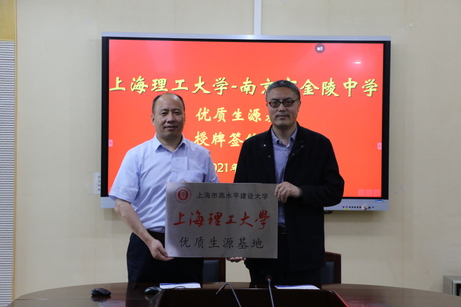 On the 19th May, the USST “High-quality Student Base” Signing Ceremony was held in Nanjing Jinling High School (hereinafter referred to as Jinling High School). Shan Yanguang, Vice-Dean of SBC and Wang Haifu, Director of College Counselling of Jinling High School attended the ceremony. Directors of Domestic Student Recruitment and PR and Marketing of SBC also attended the ceremony.