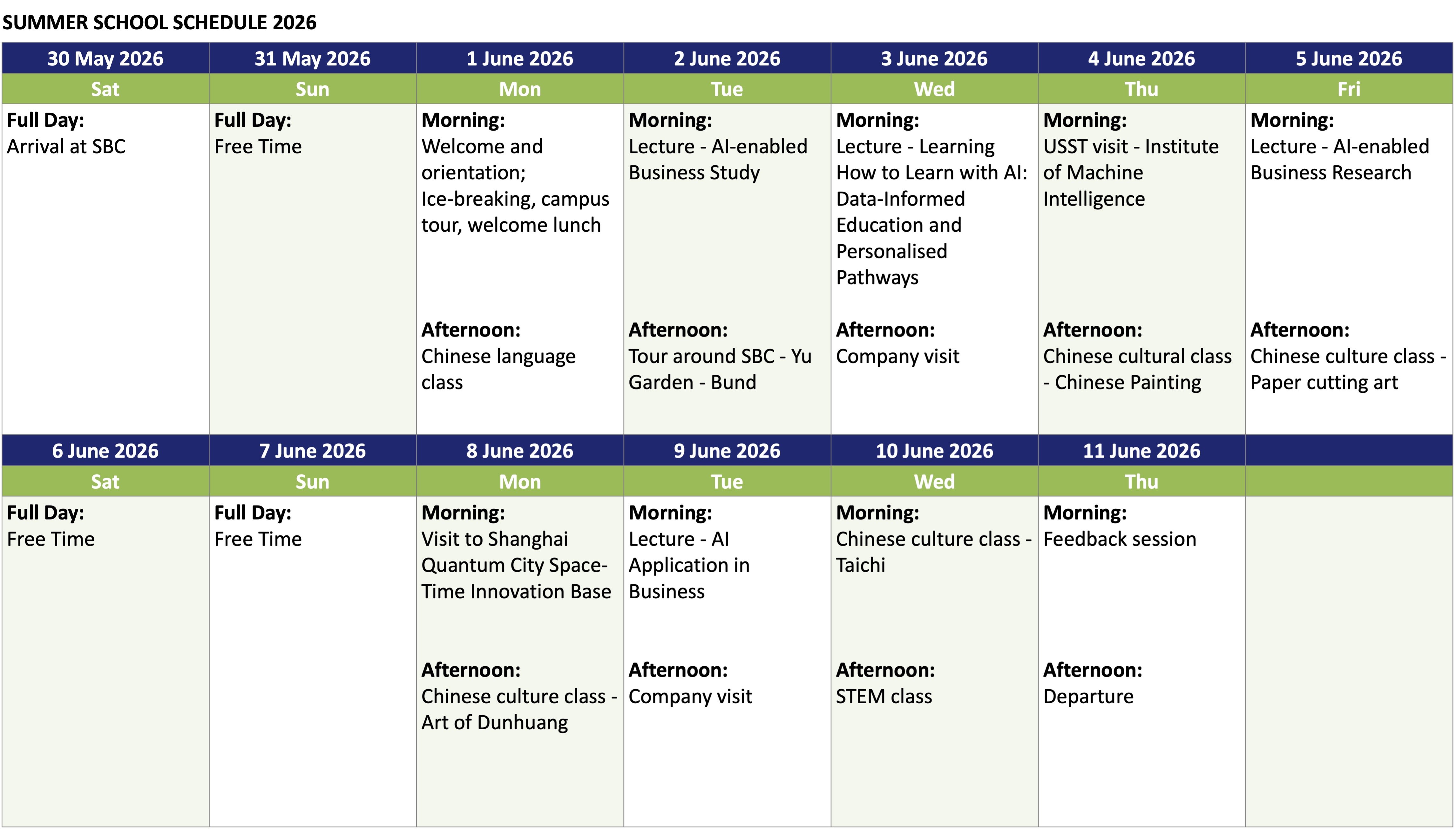 Email: Lea Huang (Coordinator) at lea.huang@sbc.usst.edu.cn if you have any further questions.