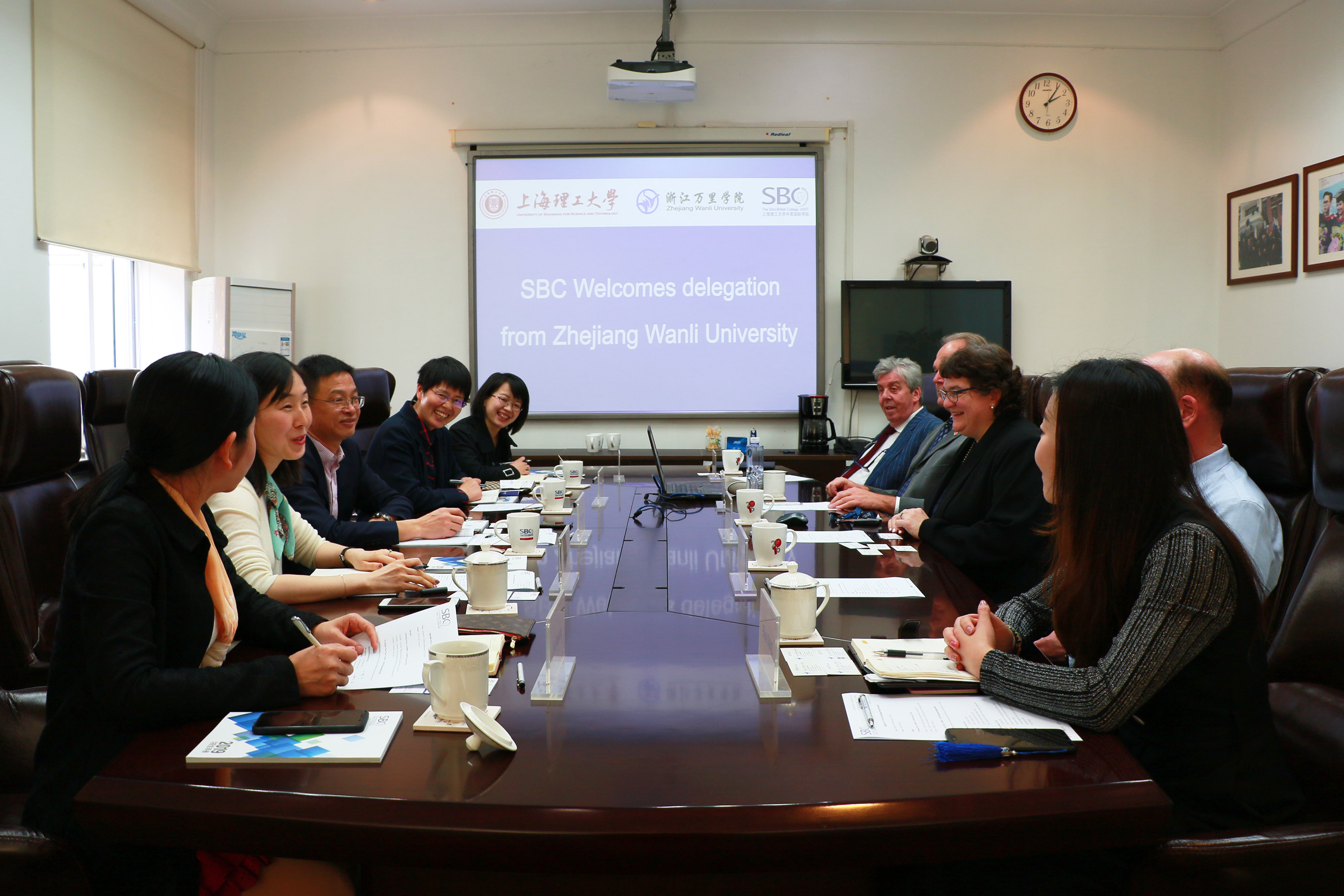 Professor Laura Bishop extended a warm welcome to the official on behalf of SBC and briefly introduced the running schools, innovative talent training and student achievements of SBC. Ma Jianrong briefed the history, teaching mode and student situation of Zhejiang Wanli University.