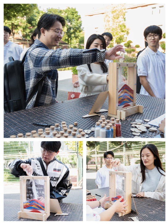 The event began with a distinctive highlight at the registration area – an interactive pouring sands installation. Alumni sequentially poured colored sand grains, symbolising Happiness, Health, and Good Fortune, into a glass container. Gradually accumulating into a mountain-like form, this act represented the convergence of past campus memories into shared aspirations for a bright future, while also embodying their heartfelt blessings for the alma mater.